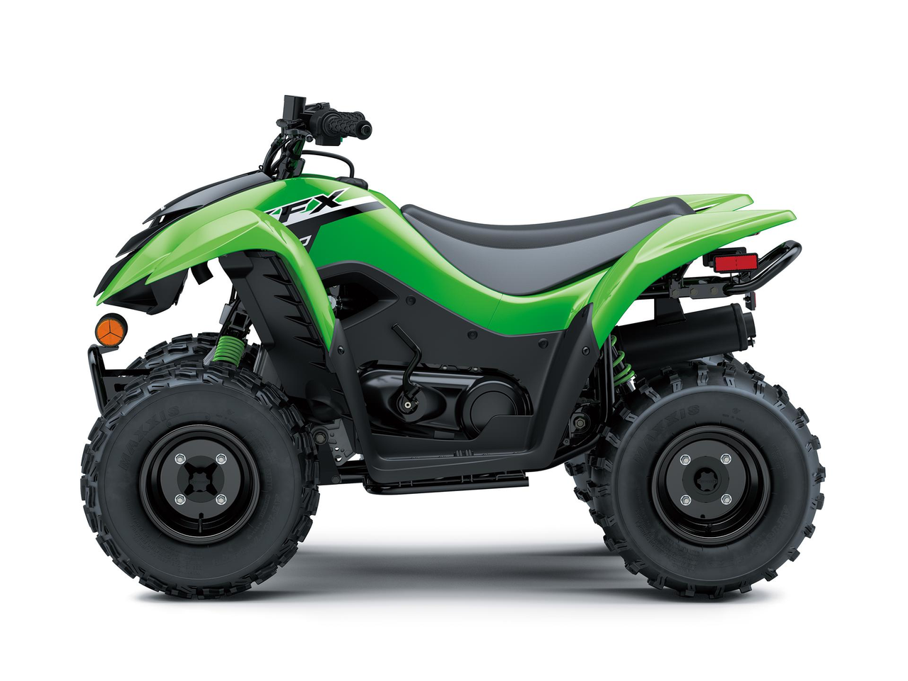 Four wheel fun starts with KFX90. Get the kids outdoors and ready to ride on the KFX90 ATV line with proportionate power and size for riders ages 10 and older. KFX90 ATVs let kids take on more challenging tracks and bigger adventures with an 89.9cc engine and sporty suspension.