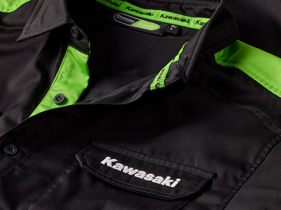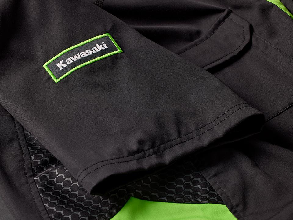 - Geborduurde Kawasaki-logo’s voor- en achteraan