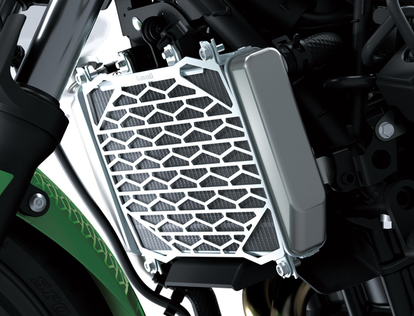 Aluminium radiateurtrim voor bescherming tegen opspattend vuil. Laser-cut patroon voor maximale luchtstroom en een lichte constructie.
