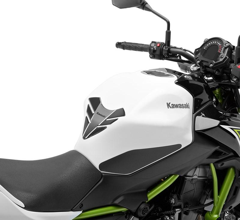 Bedrukte gelhars tankpad beschermt de lak tegen krassen en slijtage. Exclusief Kawasaki-logo.